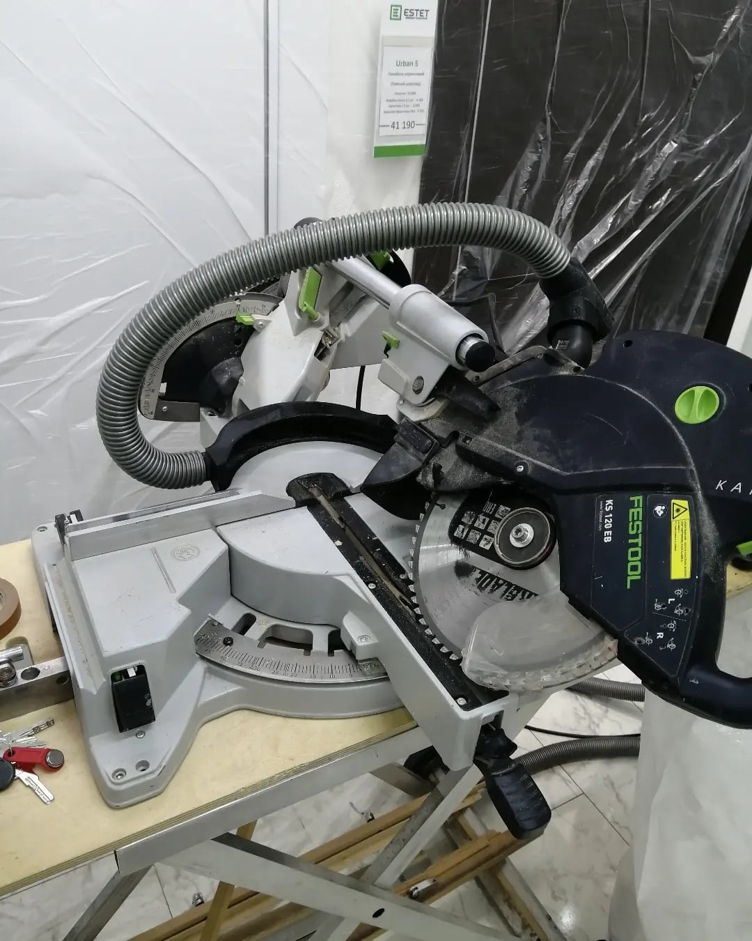 | Назначение: | Выполняет функцию «шторки». Уменьшает разброс пыли за торцовочную пилу, но частично она начинает скапливаться на станине спереди Возможности пилы после установки пылеудаления: