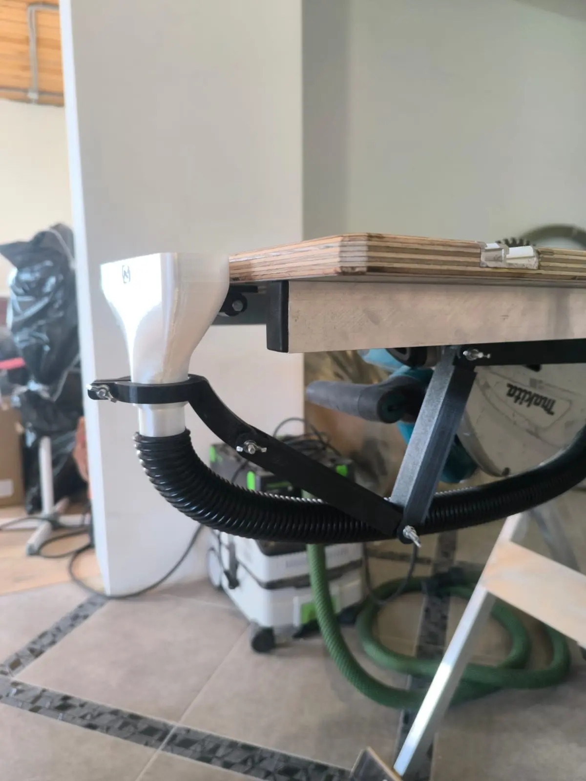 Данный комплект предназначен для складного верстака до 550мм, под 1 пылесос с выходом 35мм, погружной пилы с внешним подключением 39-39.5мм