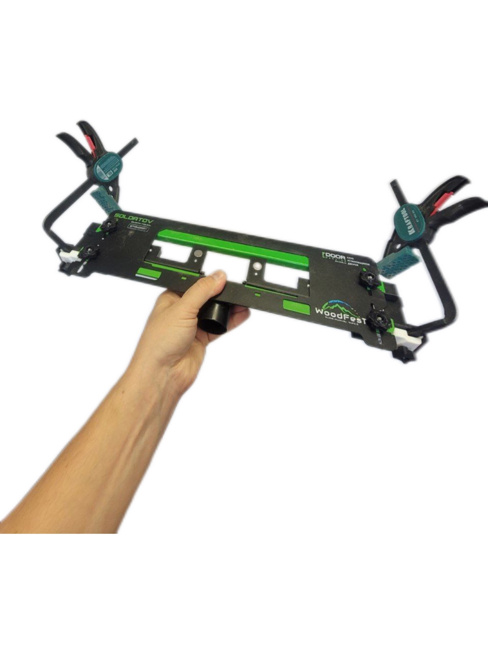 Освобождает руки при работе, теперь не нужно держать струбцины в рука отдельно от шаблона, с легкостью переставляем шаблон одной рукой