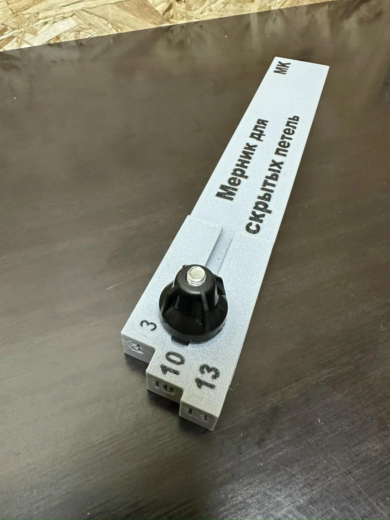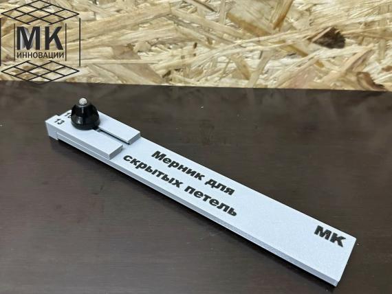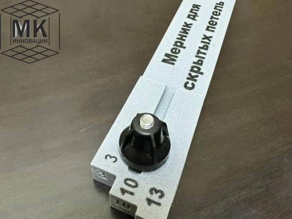Служит для переноса размера от петли до спила на коробке (срытых петель/ петель бабочек), также имеет возможность торцевания по низу 3 мм, 10 мм, 13 мм